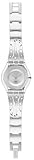 Caso trasparente. Fiore braccialetto metallo tagliato. Argento quadrante impreziosito. Fibbia gioiello. Parte della Swatch Collezione Autunno Inverno 2006. Caso diametro 34mm. 3,9 millimetri di spessore di caso. Movimento al quarzo. Impermeabile fino a 30 metri (100 piedi). Swatch Luludia Unisex Guarda SFK280G